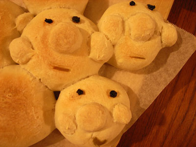 みてみて、今日のパン、アンパンマン! 焼く前はちゃんとアンパンマンだったのに、膨らんでコブとり爺さんになっちゃった。 もちろんアンパンです。
