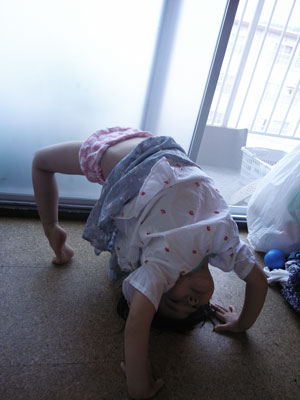 いくおくんこんにちは! そう、できるようになって、見て見てーとうるさいくらいです。つま先がいいよね。 Fの保育園の子どもたちはもっとすごい子もいるよ。