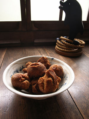 絞りかすは土間にまいて箒でお掃除、当たり前なんだろうけど珈琲豆かすをまくとコーヒーの匂いがして、お茶ガラだとお茶っぱの匂いがして、よもぎだと蓬の匂いが広がって楽しい、なにより朝晩掃いているのに信じられないくらい土ぼこりが集まるのです。土間が磨り減っているってことなのかな?