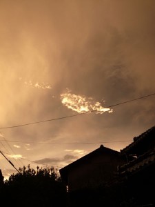FBではいろんな方が空の写真をアップしていました。海の底と表現されている方もいたし、真っ赤な夕焼けもありました。 世界の終わりのような夕暮れ、竜巻のたいへんなニュースもあった9月4日、 私はここから世界を見ているんだ、と思いました。